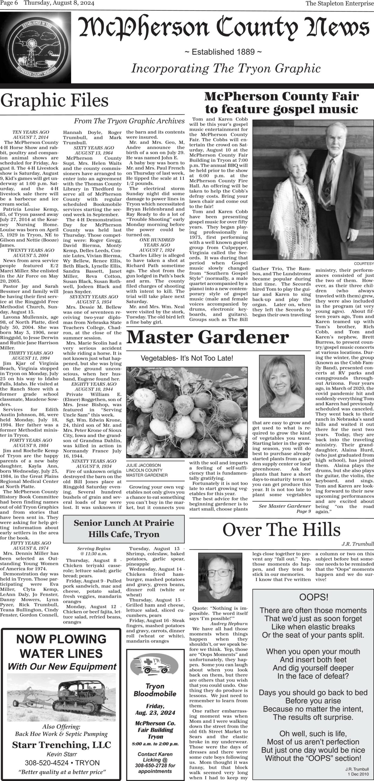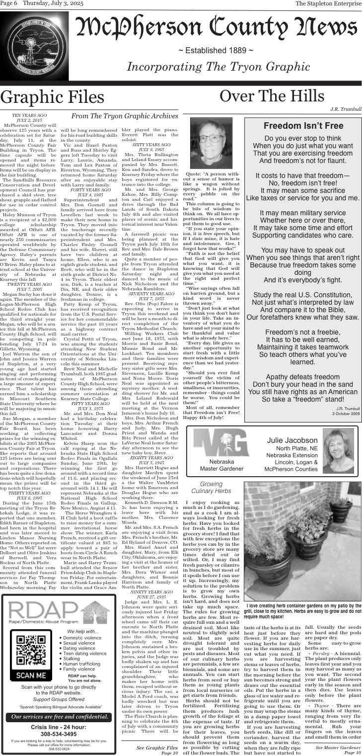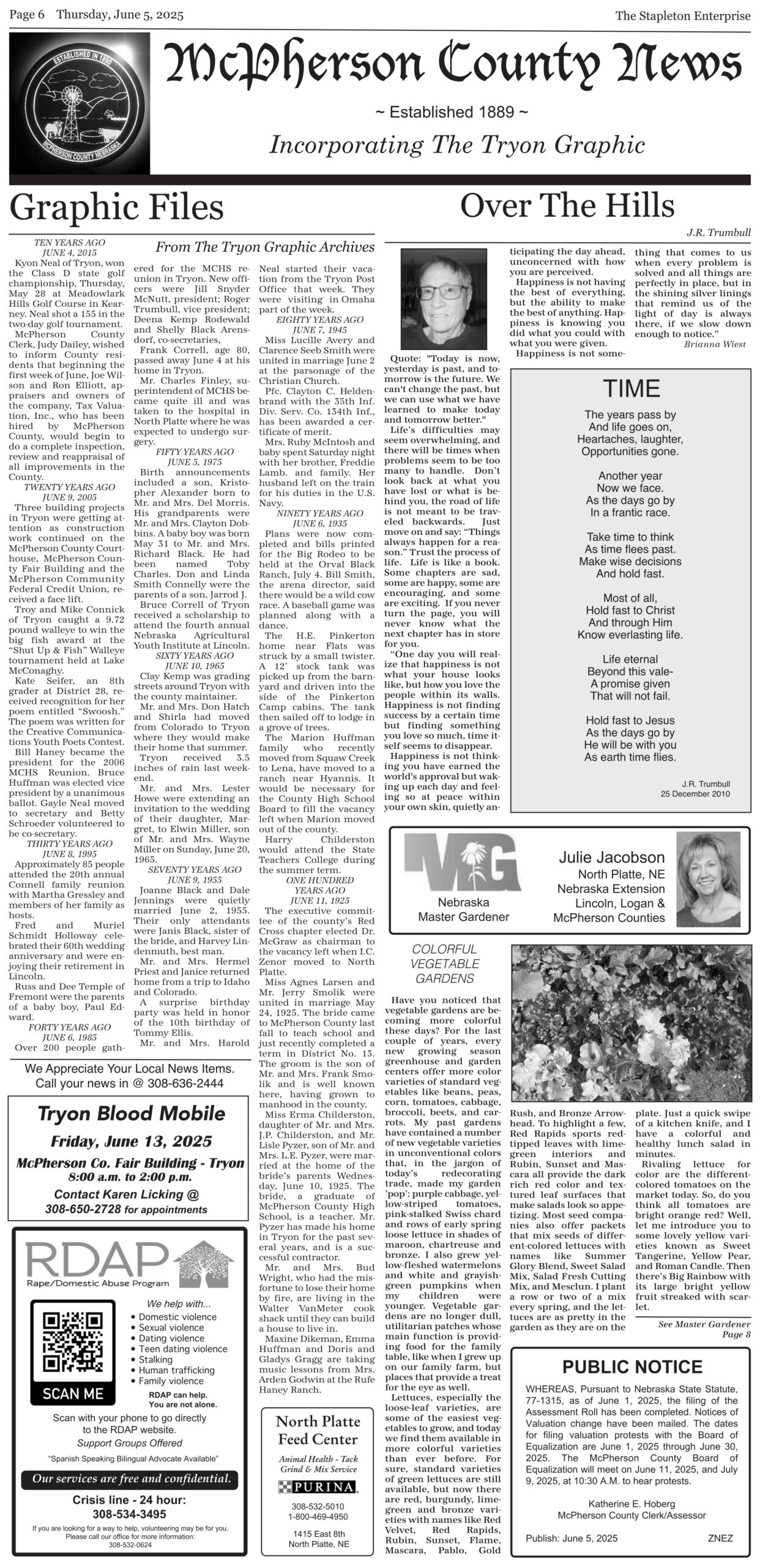 Note: The Stapleton Enterprise/McPherson County News is a combined