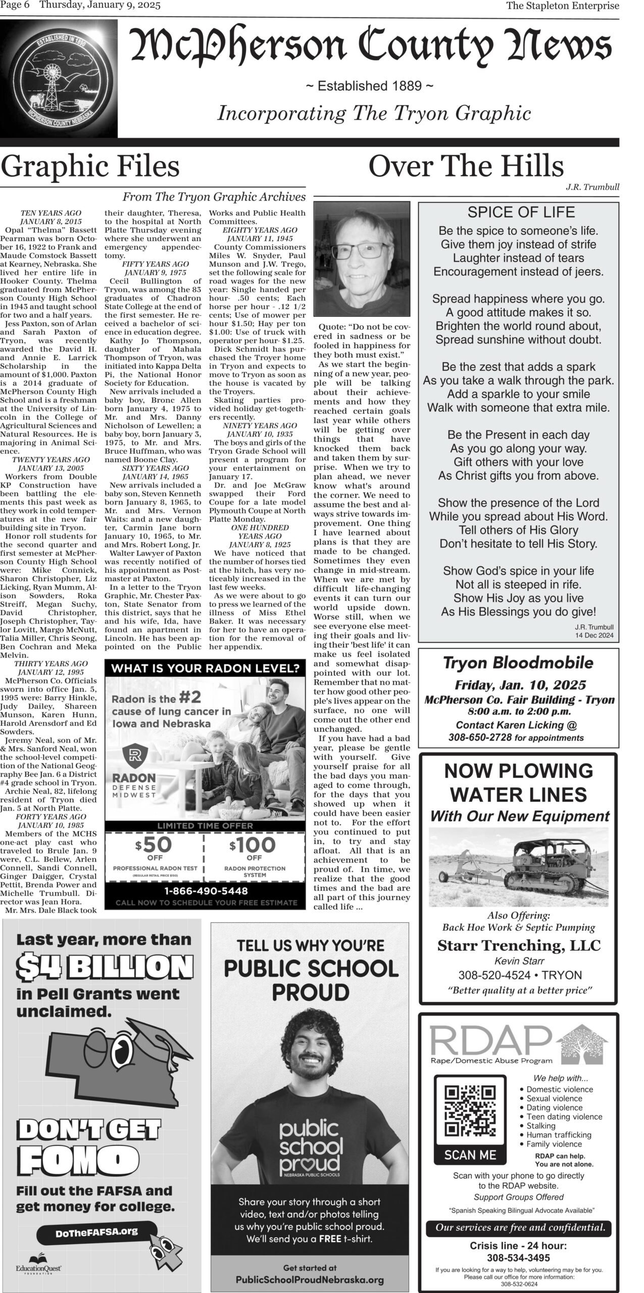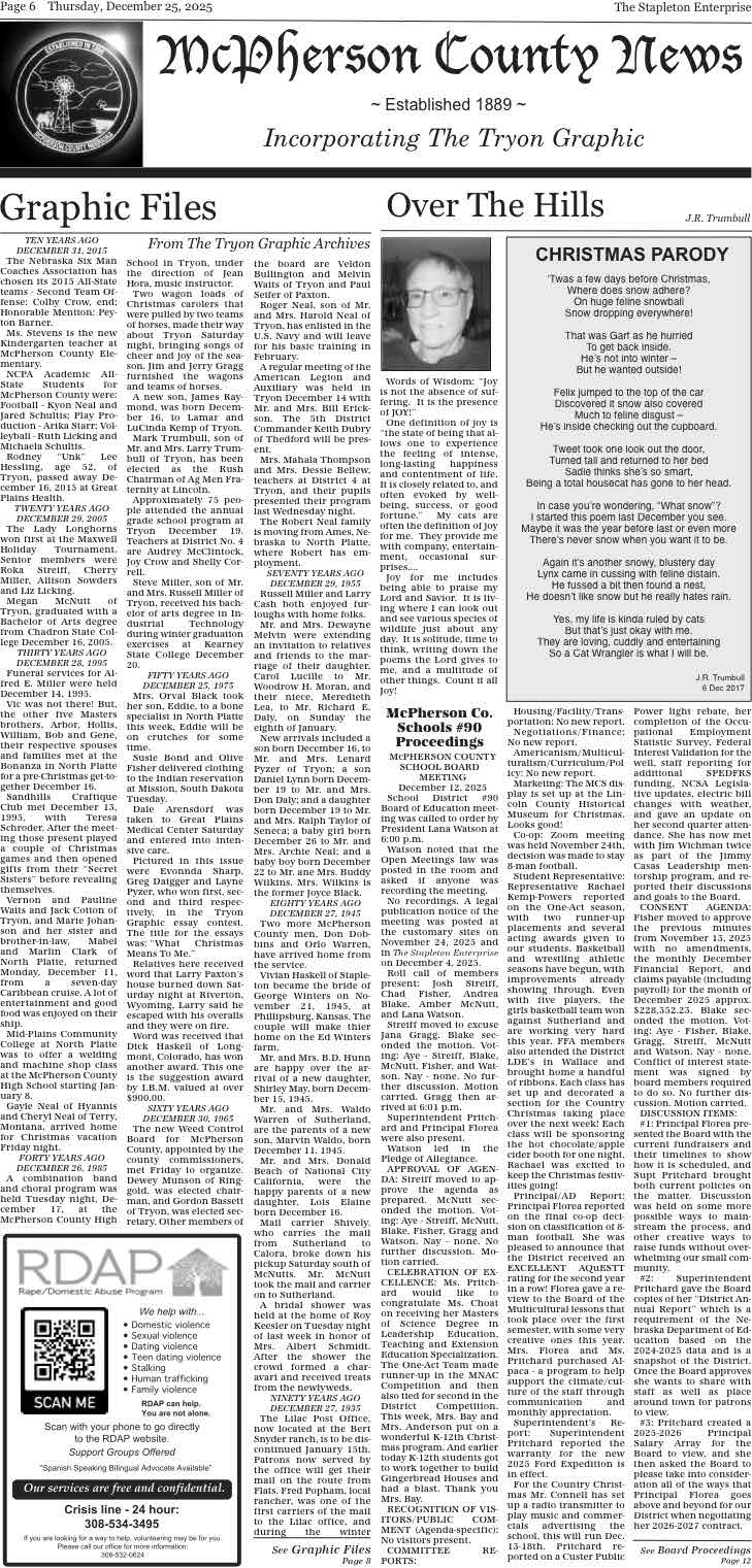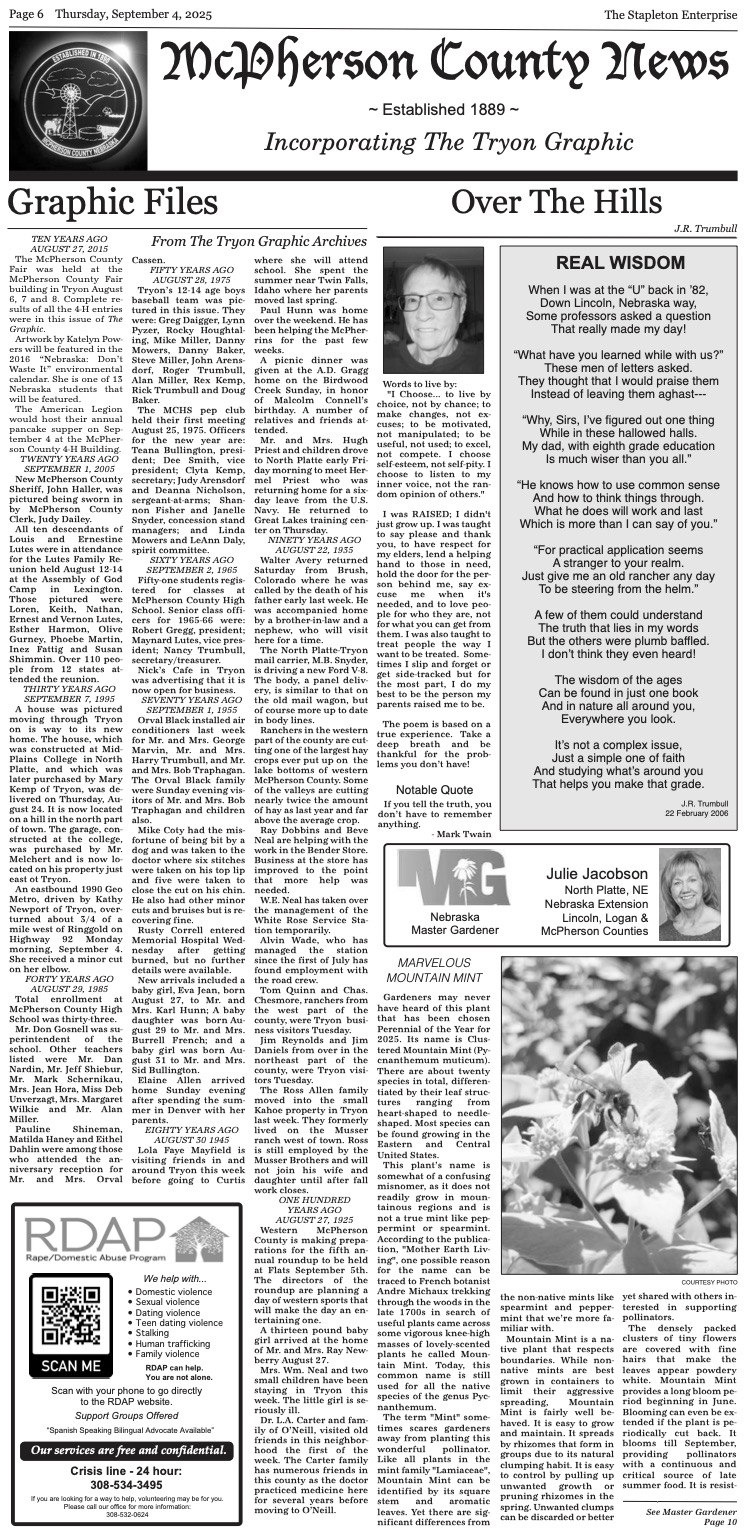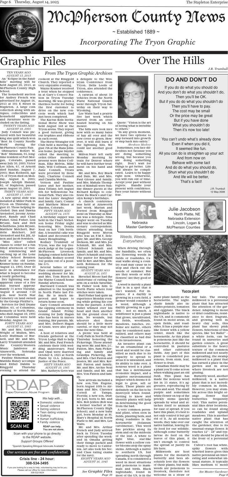 Note: The Stapleton Enterprise/McPherson County News is a combined