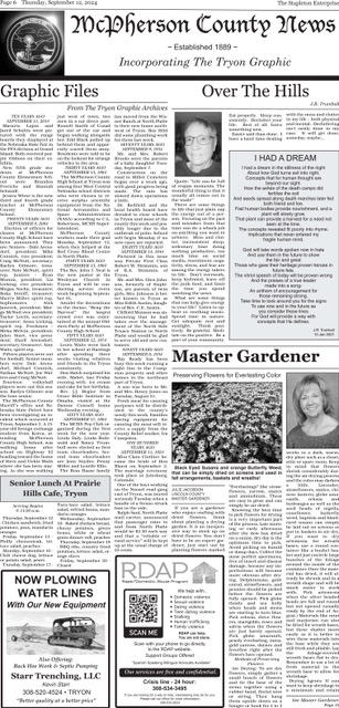 Download the front page of our McPherson County News as a PDF in the right column of this page.