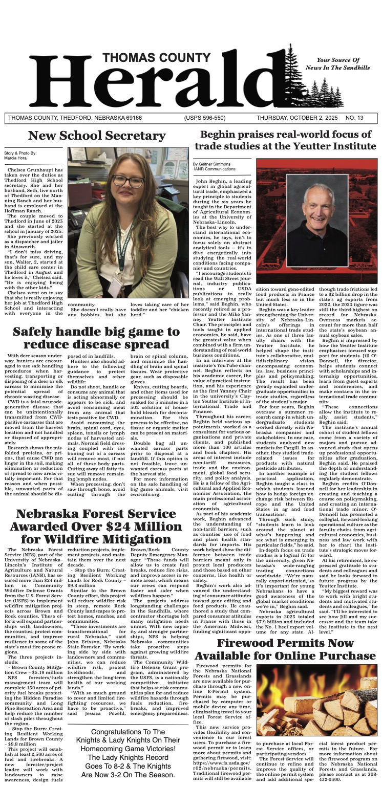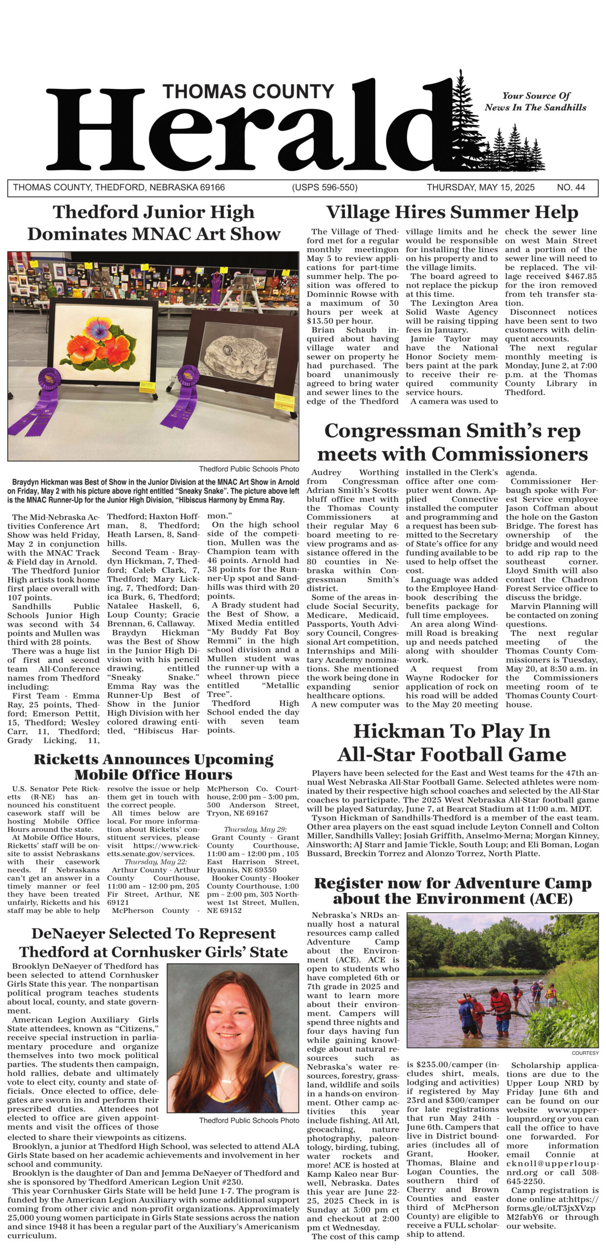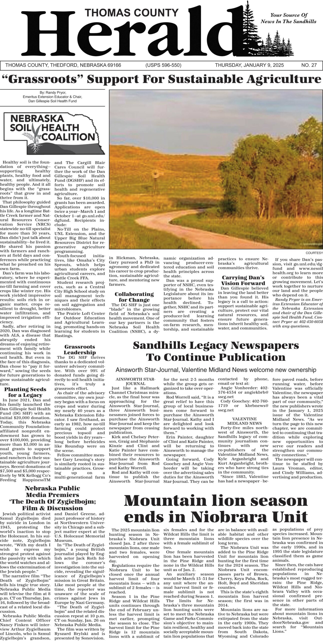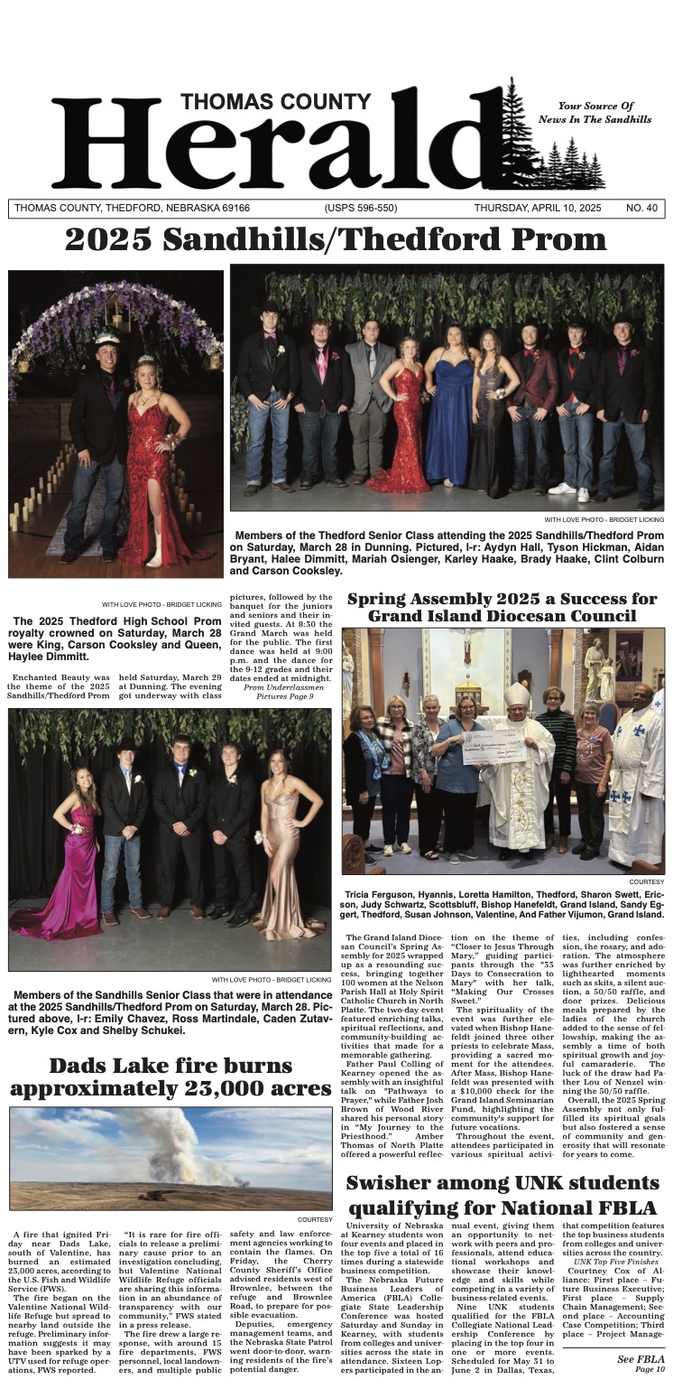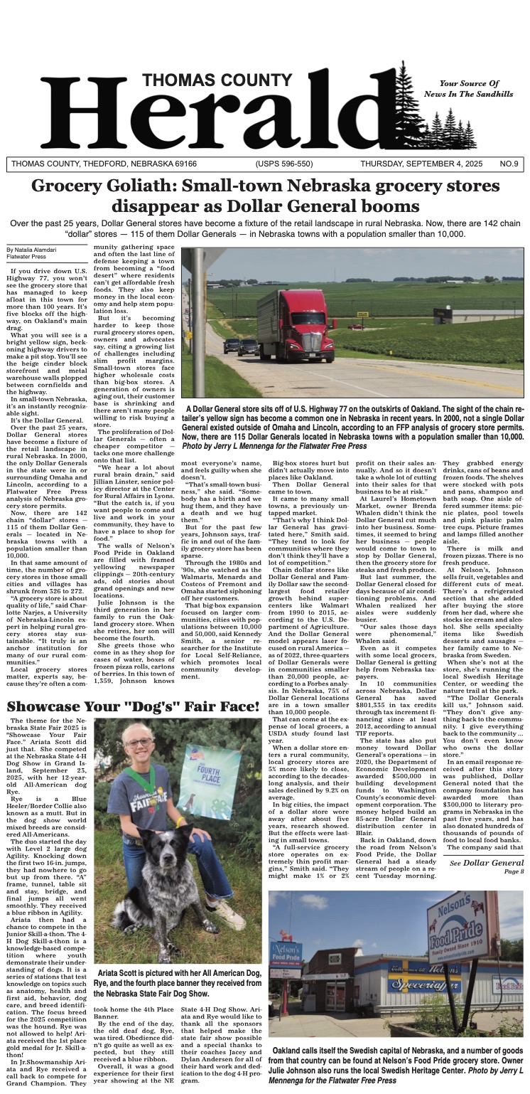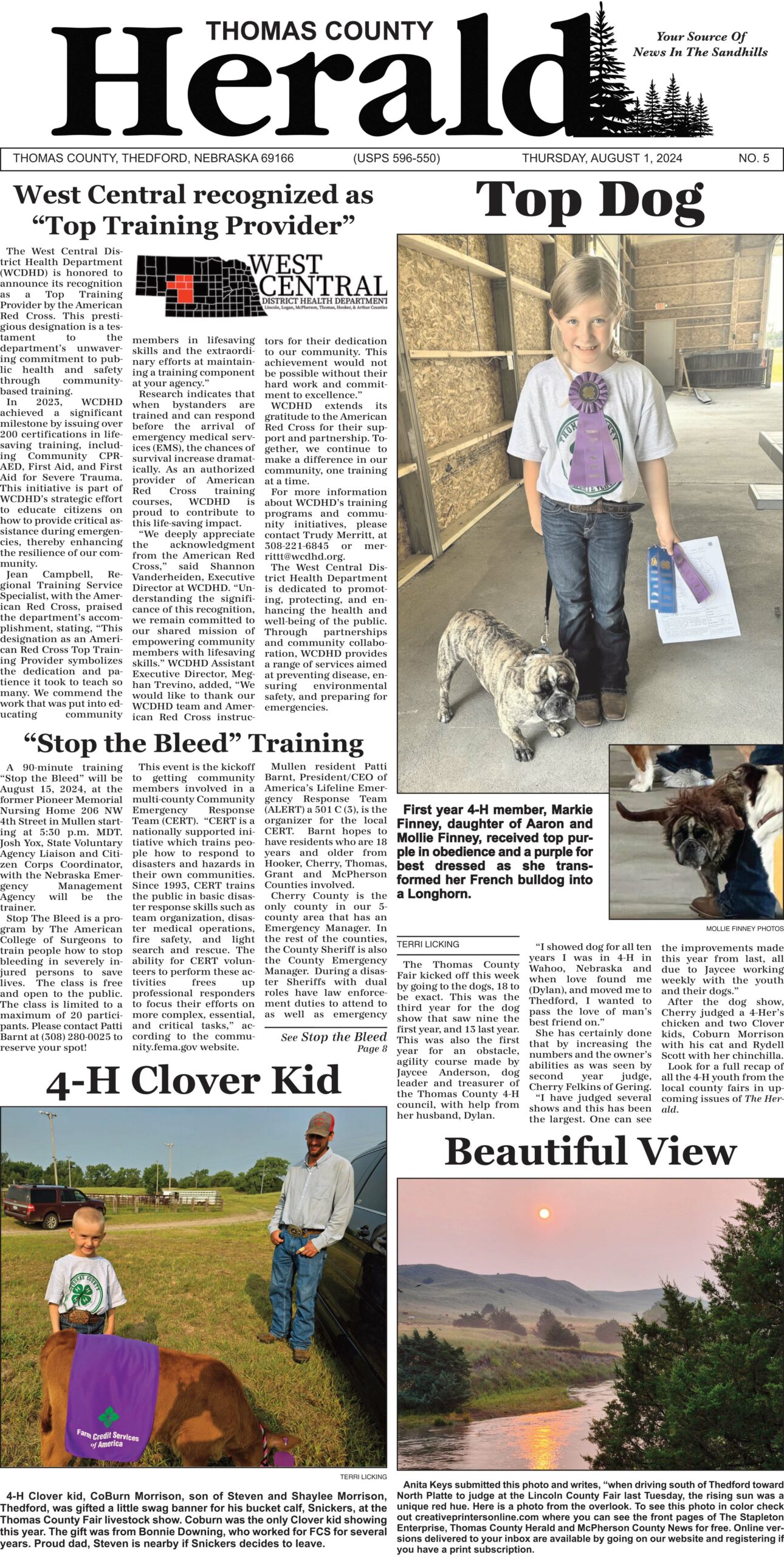 The Thomas County Herald is the official newspaper of Thomas County and serves the residents of Thedford, Halsey, Seneca and Dunning. The Thomas County Herald was re-established in 1981 after the Thomas County Herald-Clipper ceased publication in 1965.