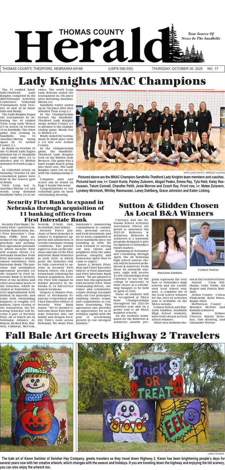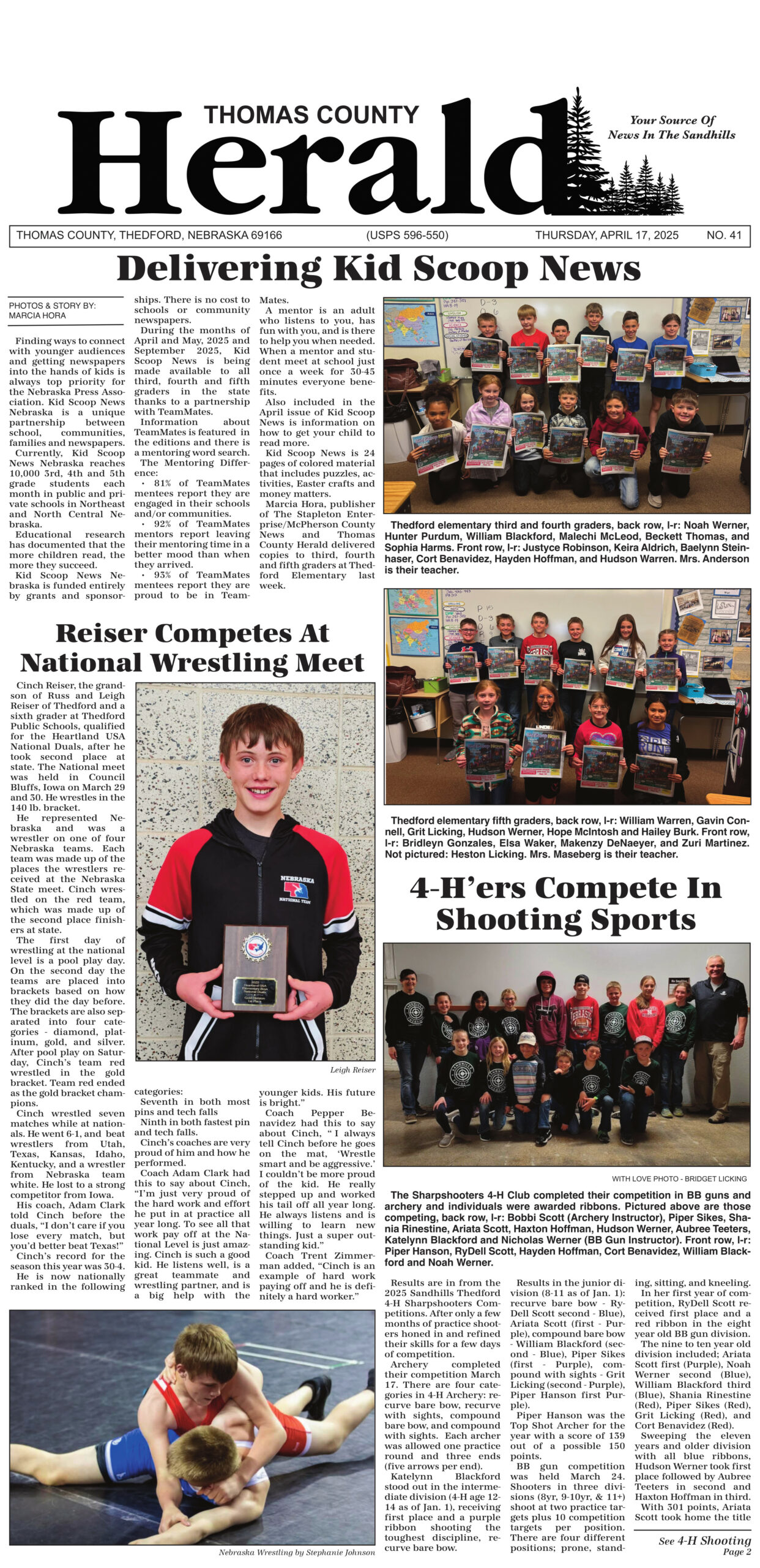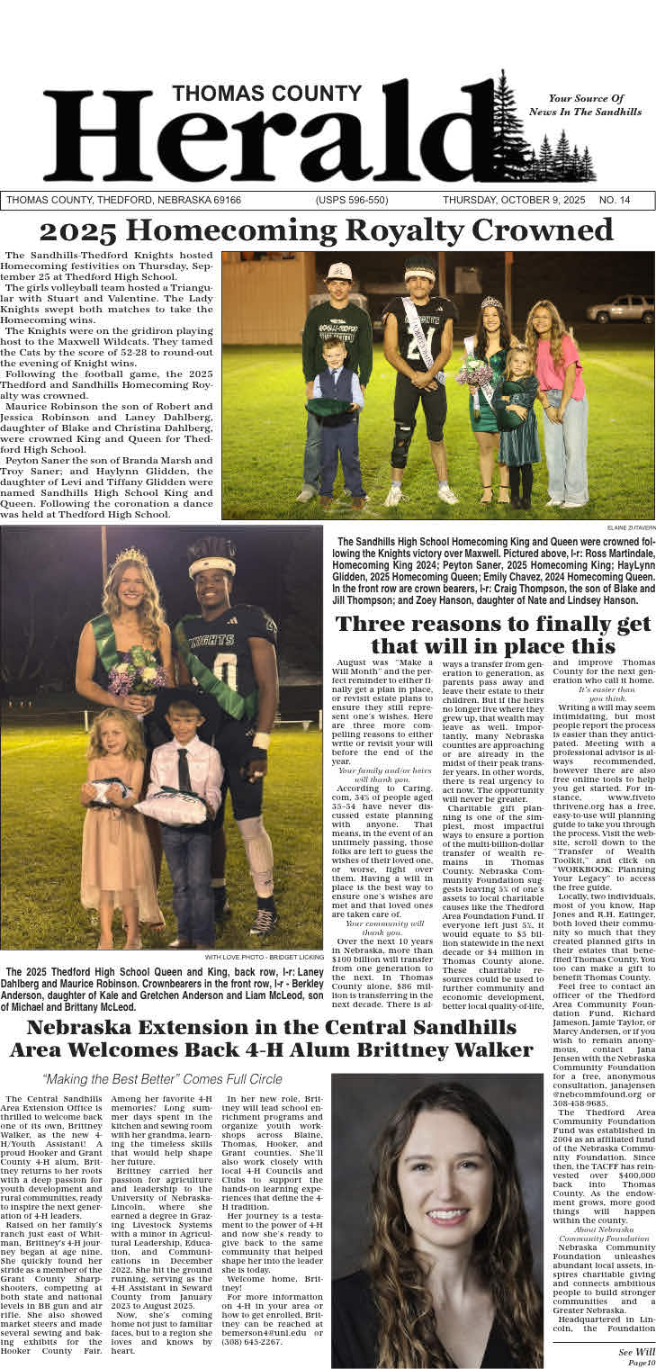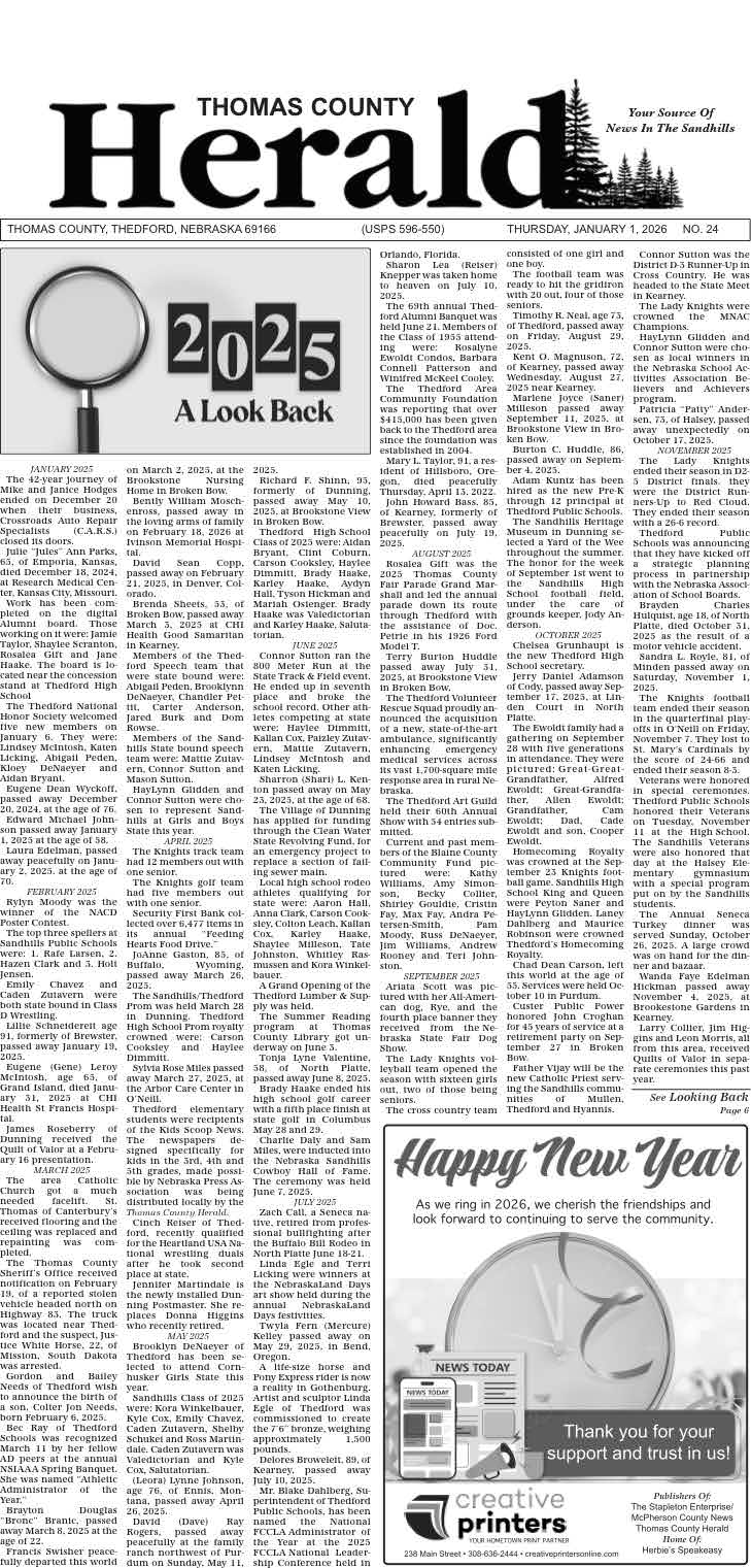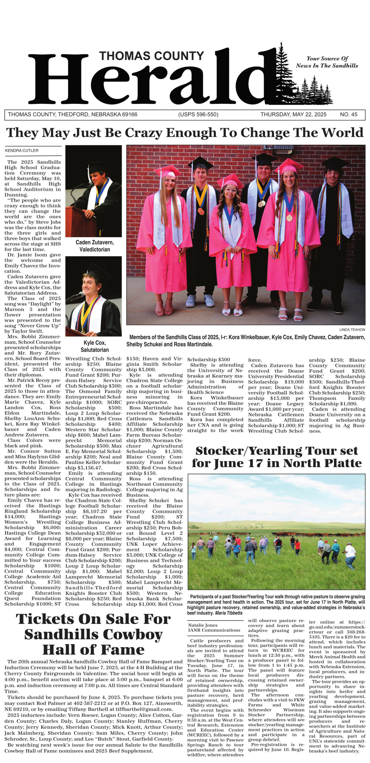 The Thomas County Herald is the official newspaper of Thomas County and serves the residents of Thedford, Halsey, Seneca and Dunning. The Thomas County Herald was re-established in 1981 after the Thomas County Herald-Clipper ceased publication in 1965.